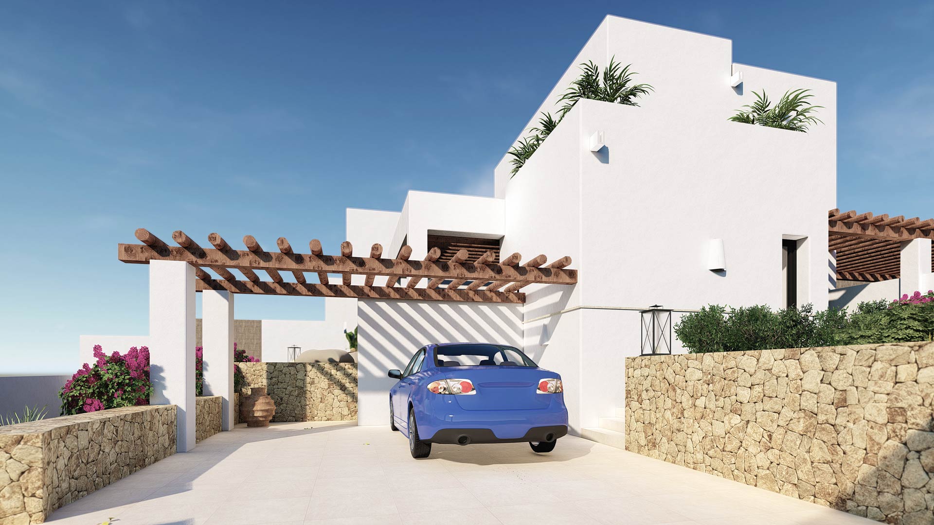 En una parcela de Moraira, se plantea un conjunto pareado diferente, donde cada vivienda es única, desde el acceso hasta la forma de vivir.